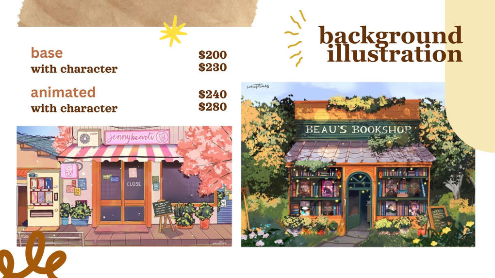 hello there! i'm rain :) i'm a freelance illustrator with 5 years of experience and i mostly draw foods, backgrounds, and other cute things!you can see more of my personal and commissioned works at my portfolio <3